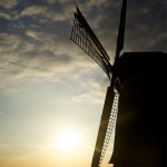 - Windmill in the rural landscape of the Netherlands. near the coast of North-Holland. The evening sun paints the picture in warm colors.